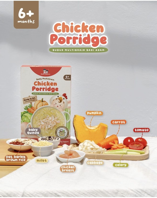 Double Happiness Multigrain Porridge – Chicken is a nutritious instant baby porridge specially formulated for babies from 6 months onwards. Made with a blend of wholesome multigrains and real chicken flavour, this porridge provides balanced nutrition to support your baby’s healthy growth during the weaning stage.