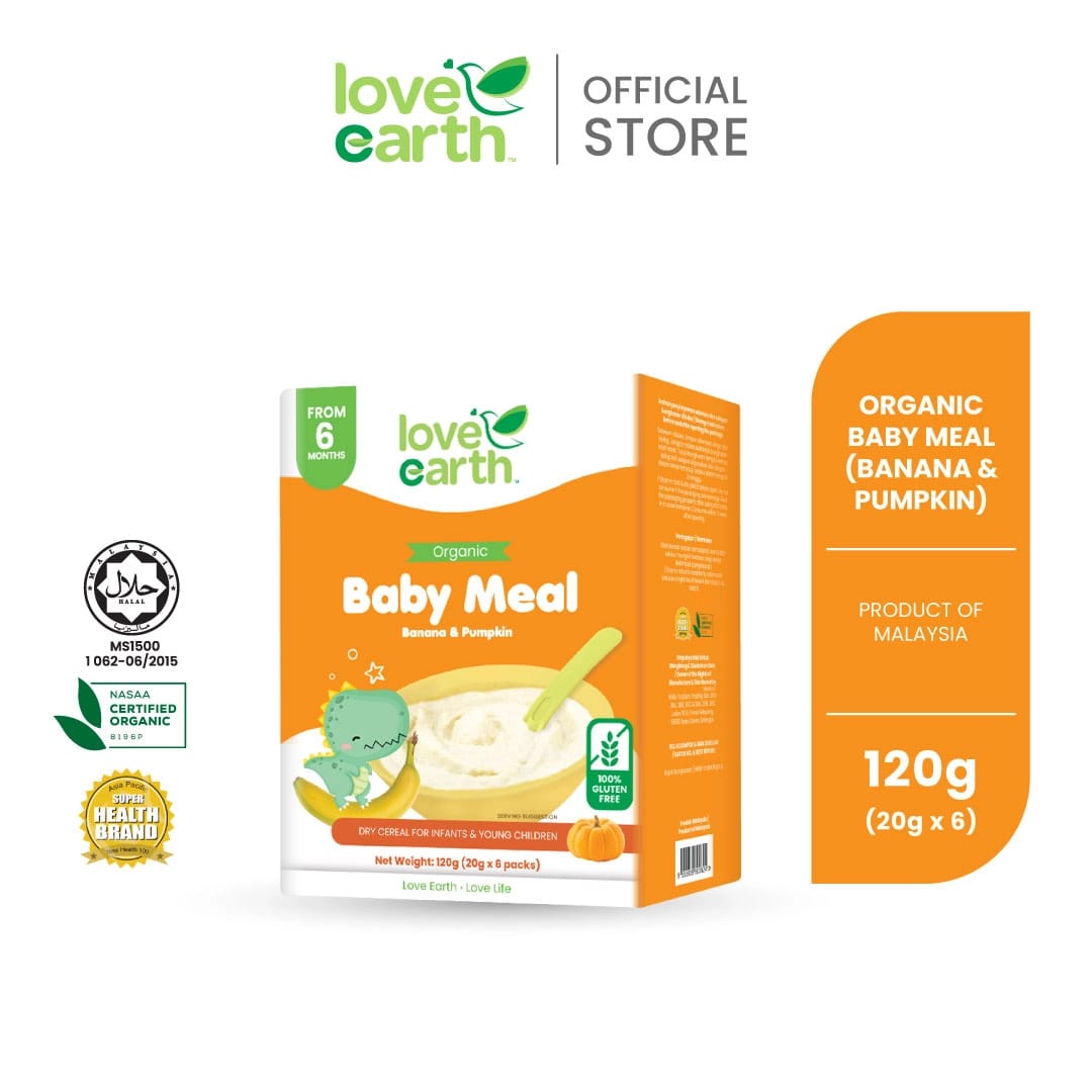 Love Earth Organic Baby Meal Banana & Pumpkin is a smooth and nutritious puree, specially created for babies from 6 months and older. This organic baby meal blends the natural sweetness of banana with the mild, comforting taste of pumpkin — providing a gentle and healthy introduction to solid foods.